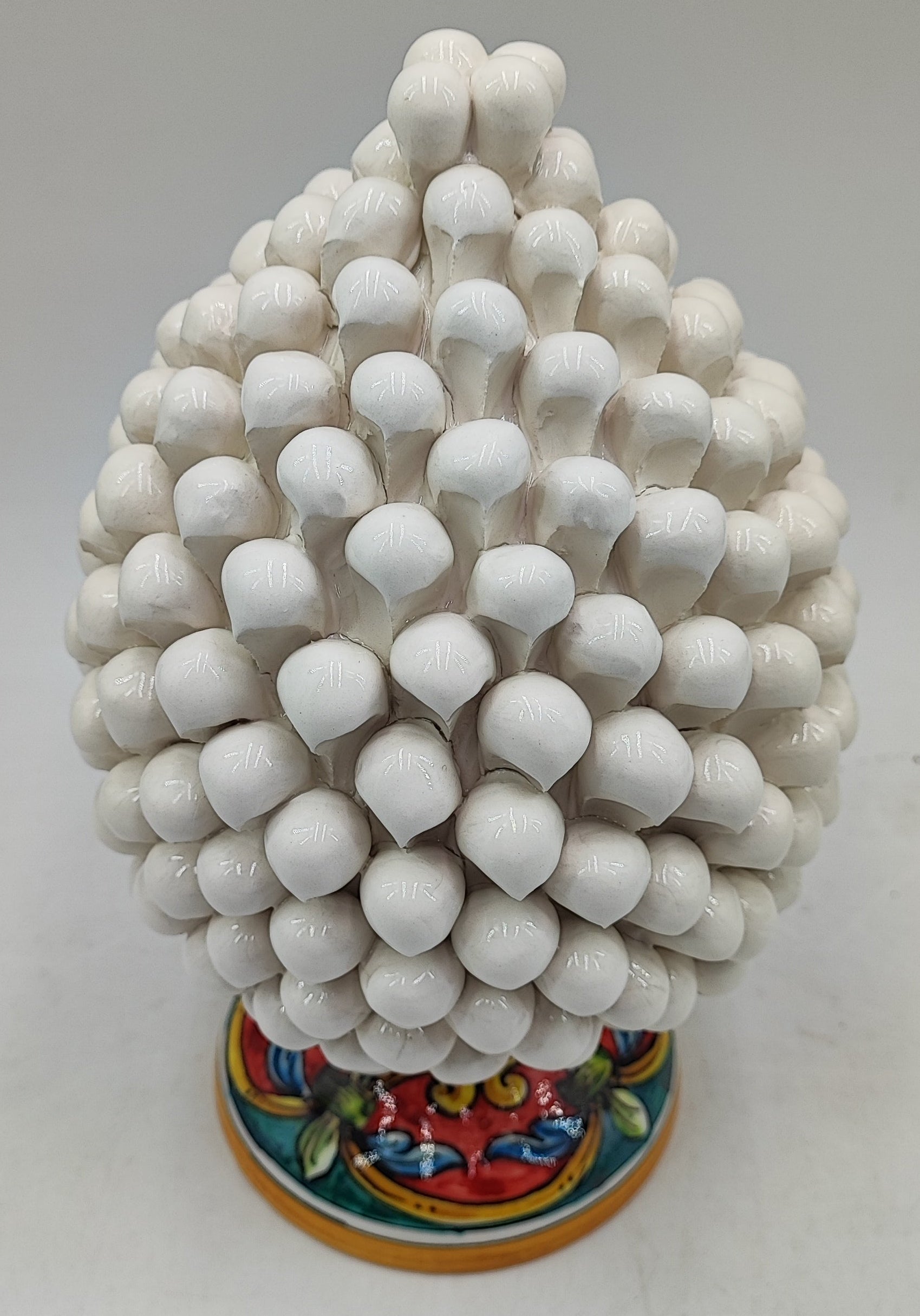 The Caltagirone ceramics are famous for their long-standing tradition of creating beautifully crafted and vividly colored ceramic pieces. The Pine Cone (Pigna) is one of the most iconic items produced in this tradition, symbolizing good fortune and prosperity.