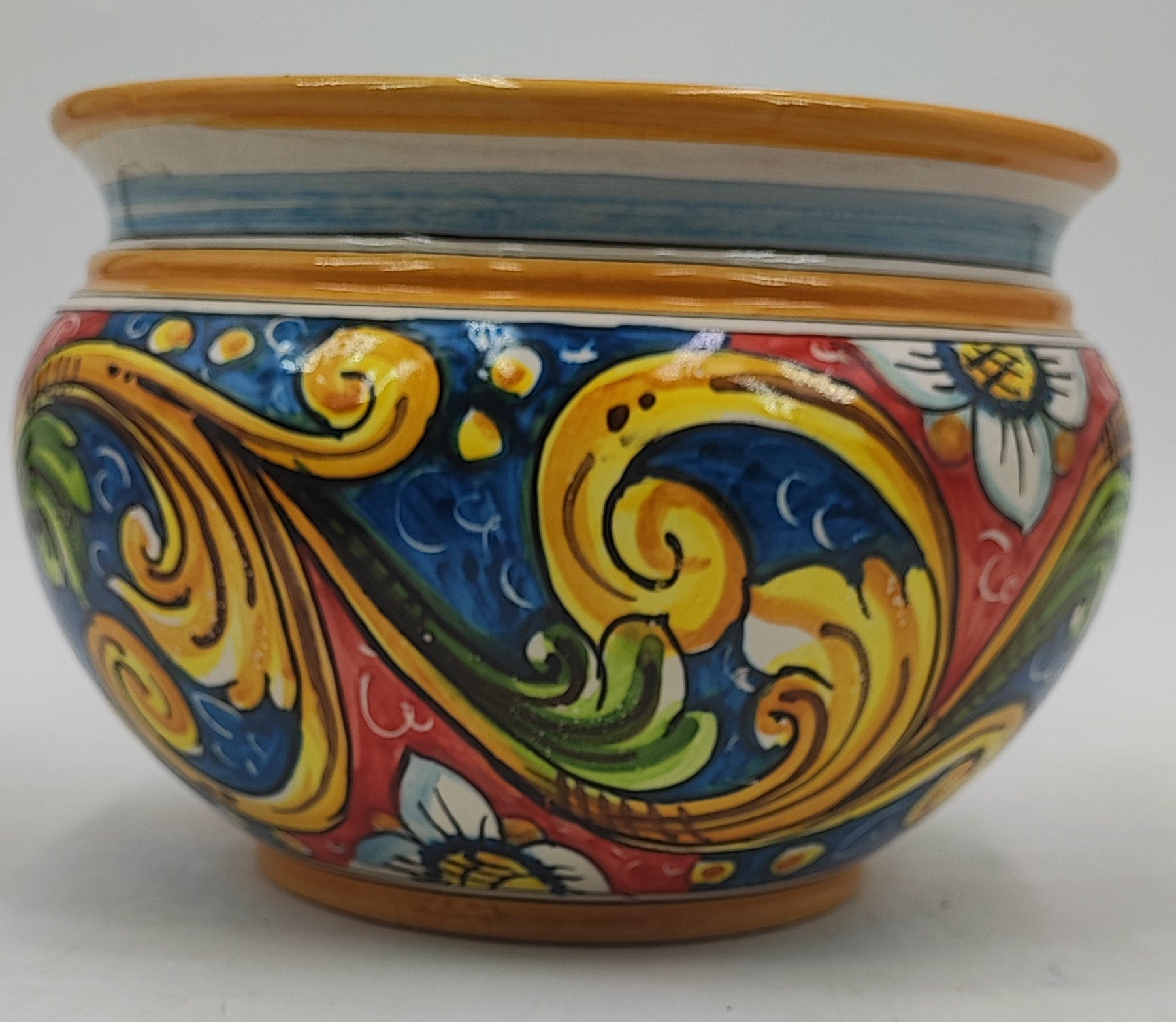 Each piece is uniquely hand-painted with traditional Sicilian colors and patterns, making every design product a one-of-a-kind work of art.