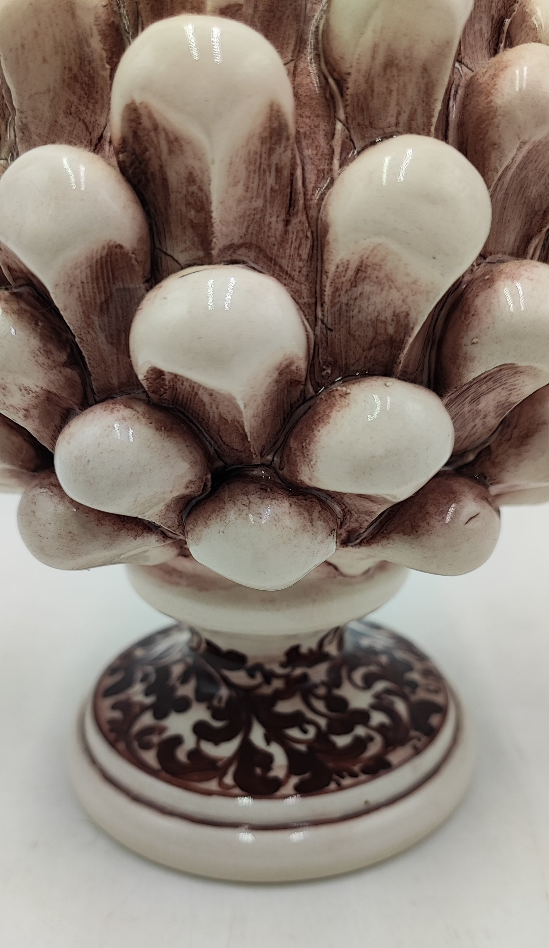 Sicilian ceramic pine cone, hand made, with decorative base and with out 15cm